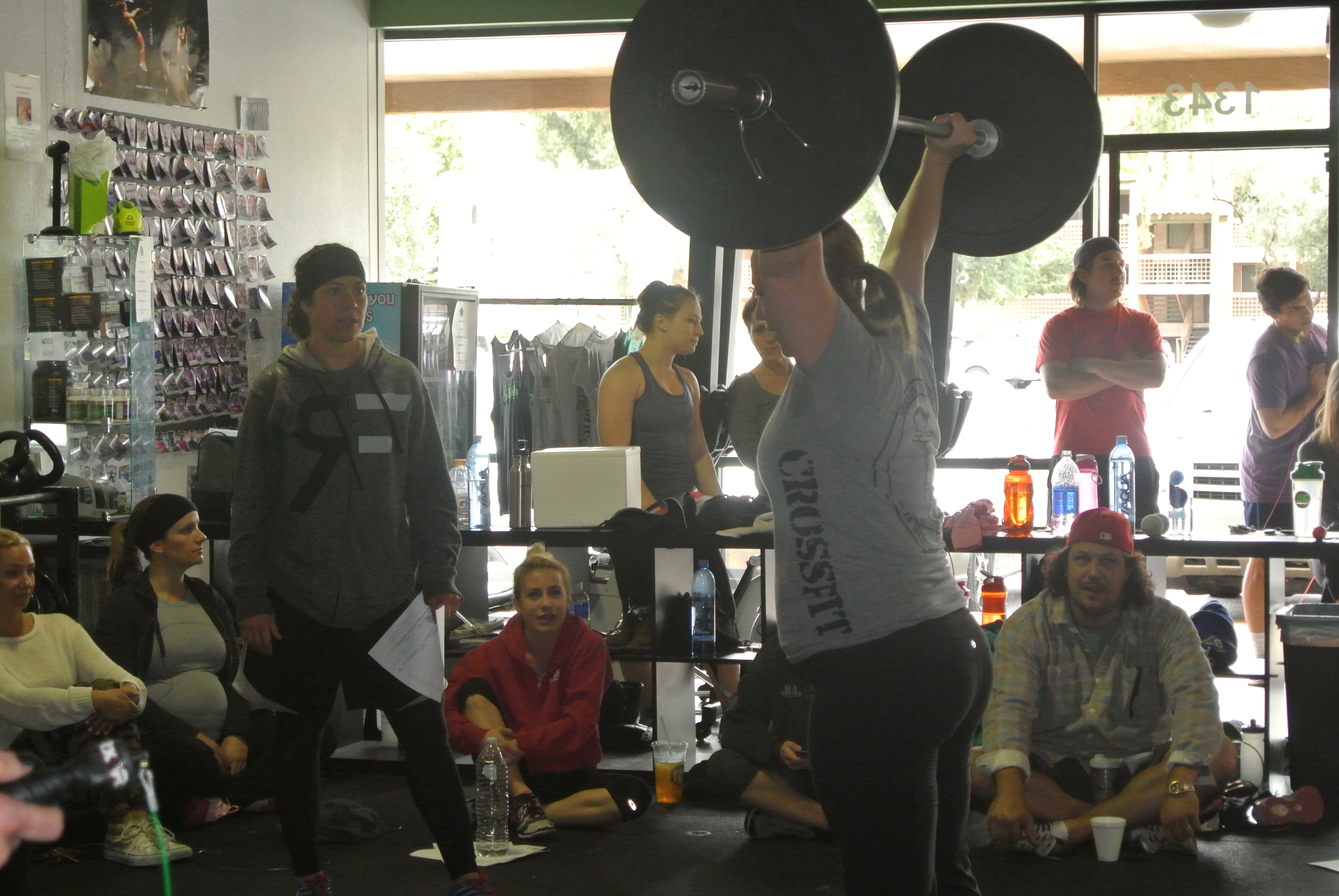 Hubby Aaron watches as Sara competes in 14.1.